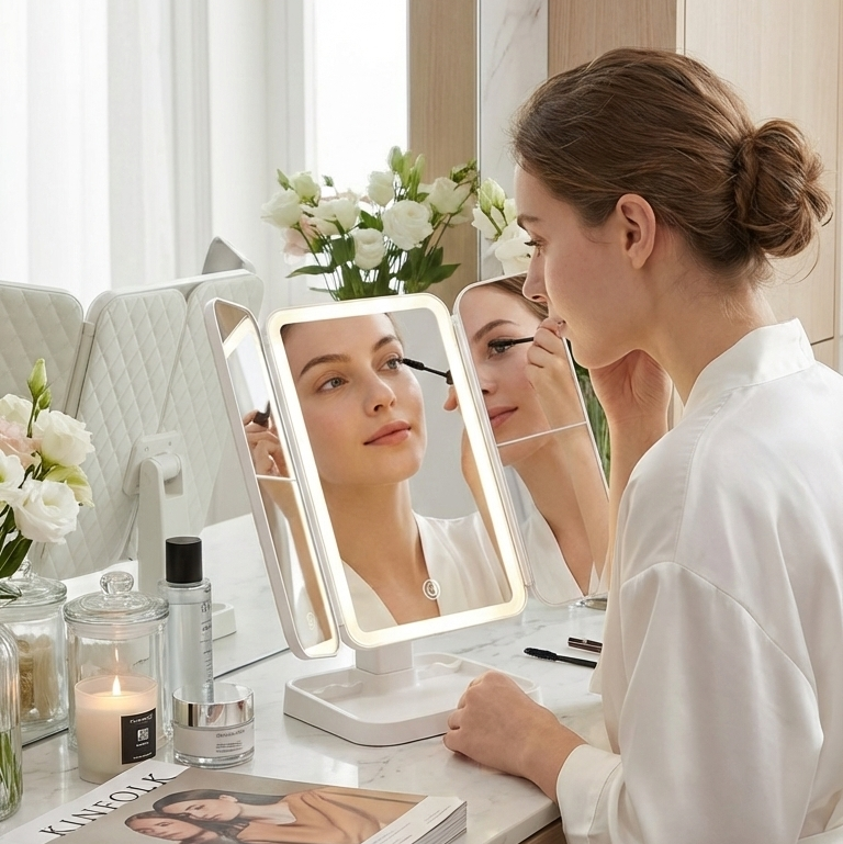 Profesyonel makyaj sanatçılarının sırrı artık evinde. Ayarlanabilir parlaklık seviyesi ve entegre büyüteçli paneller sayesinde en ince detayları bile atlama, her zaman kameraya hazır ol.