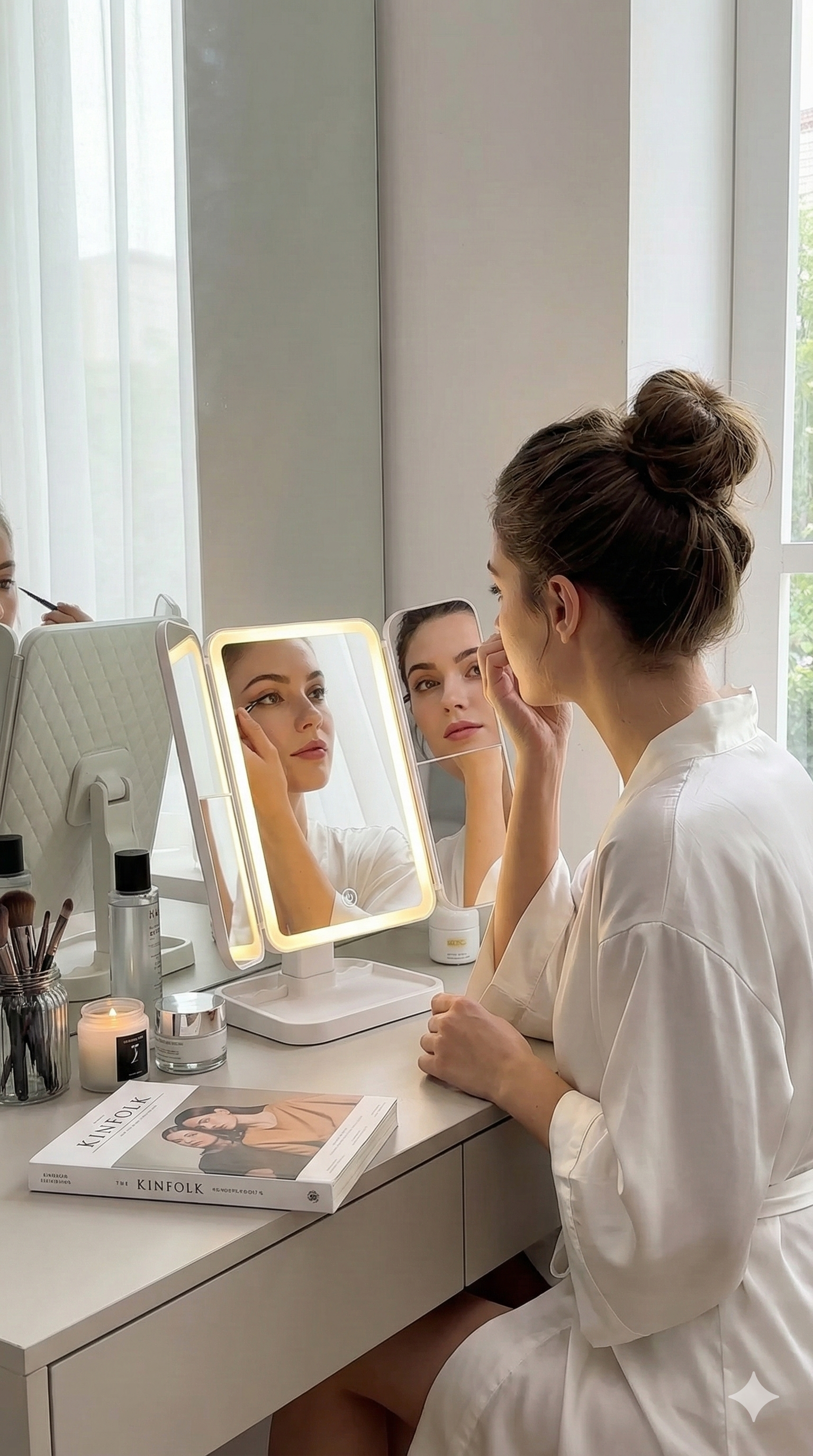 Loş ışıkta yapılan makyaj hatalarına son! Doğal gün ışığını simüle eden ultra parlak LED aydınlatma ile renkleri en doğru haliyle gör, her ortamda kusursuz bir görünüm elde et.